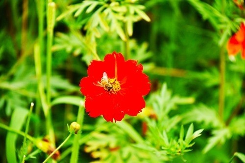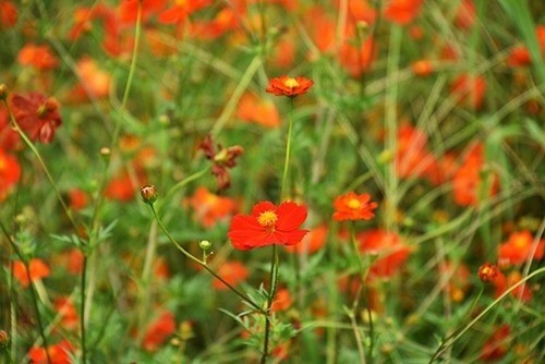 「キバナコスモス」という名だから「黄色い」と思うのだが、赤やオレンジもある。