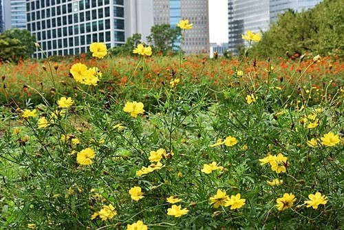 少しだが秋風を感じたので、そろそろ浜離宮恩賜庭園の「キバナコスモス」が見頃ではないかと思った。以前なら窓から浜離宮のお花畑が見えたのだが、いまは目の前のタワーマンションが邪魔で見えなくなった。