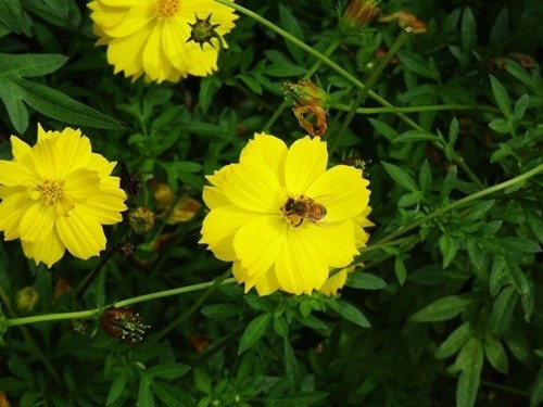 ミツバチを見ていると、黄色の花の方が好きなようだ。