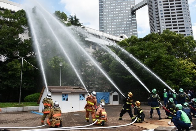 大雨が続いた東京で水は十分にあるのだから、消火栓を使って盛大に放水して欲しかった。しかし消防団のユニホームがお洒落で、とても良かったことが印象に残った総合防災訓練だった。