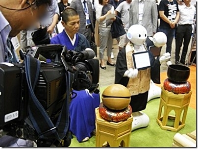 ロボットの坊さんの読経と説話。(ここだけはTV取材が多かった)