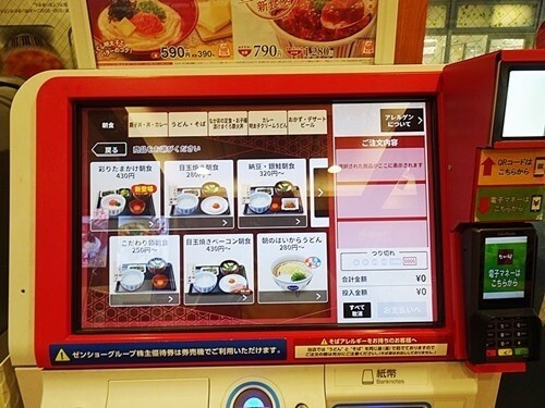 朝食の自動発券機(なか卯で)