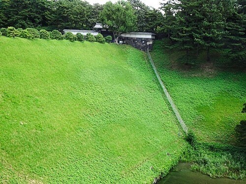 内堀通りと大使館の間には林があり、道路からは直接、中は見えない。