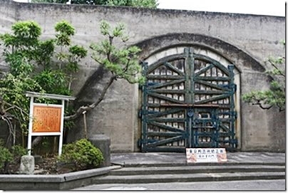 「開かずの門」 1879年に日本で初めて作られた刑務所の門扉が記念に残されている。
