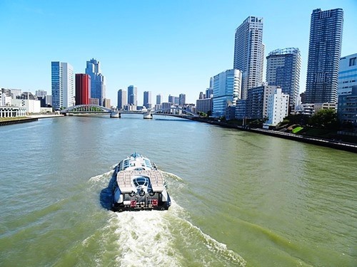 築地大橋を浅草へ向かう観光船「卑弥呼」