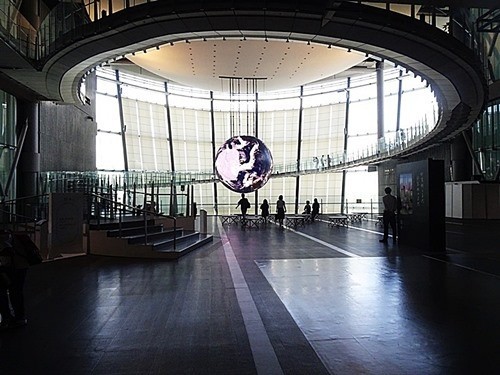 館内の吹き抜けに巨大なジオ・コスモス(地球儀)が吊り下げられている。