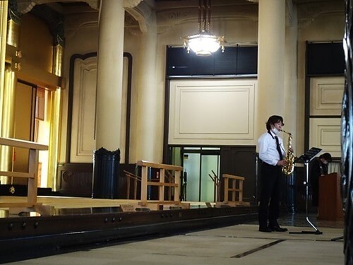 演奏は本堂に設置されたパイプオルガンを使い、その時々で他の楽器と合奏したりする。今回はサキソフォンとの合奏で、「映画音楽」を中心に演奏された。
