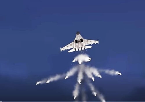 フレアを蒔いてウクライナのミサイルから逃げるロシア機