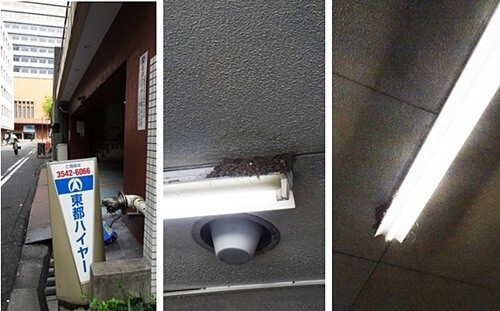 「第2厚生ビル」でも蛍光灯の上に巣があった。