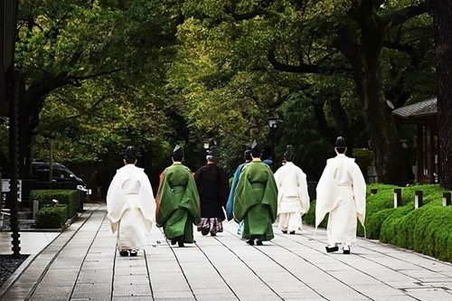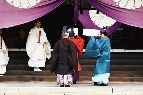 白い包が2つ見えた。勅使たちはそれを捧げ持って、奥の神殿に入って行ったのが見えた。