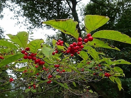 「オガタマノキ」とか「ウメモドキ」など聞いたことの無い木に赤い実がなっていた。