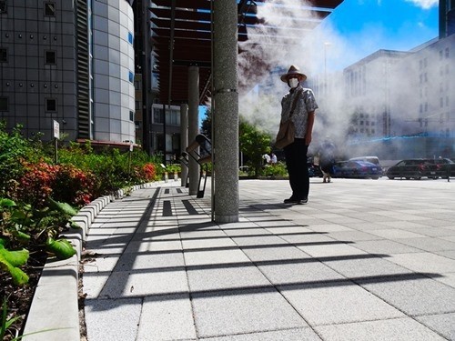 昔は風鈴が夏の風物詩だったが、いまはミスト噴射になっている。