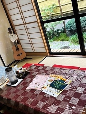 『見た目は完全に民家で個人名の表札まであります。中に入ると更に驚きで、普通に玄関。手作りのスリッパが6足色とりどりに並んでます。和室(座敷)は庭が見えるのどかなシチュエーションです。洋室(椅子席)は、主人の趣味の部屋風で私鉄電車の写真やロック調の人形も飾られている。
