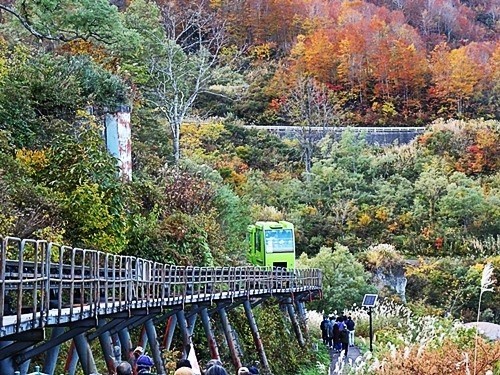 ダムから駐車場までは片道100円の登山電車があった。
