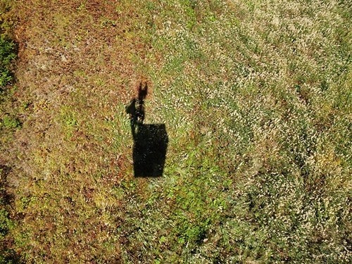 八海山のロープウェイが地面に影となっていた。