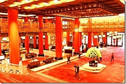 圓山大飯店のロビーは広い。 左奥のレストランで美味しくない朝食を食べた。