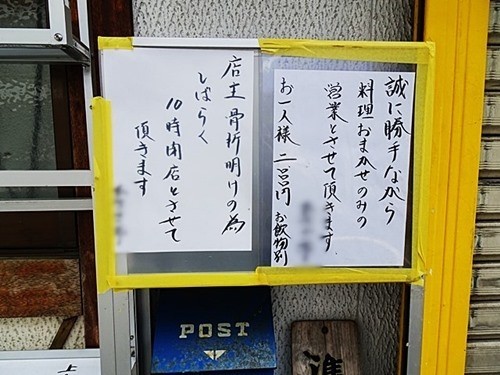 『誠に勝手ながら 料理おまかせのみの 営業とさせて頂きます』