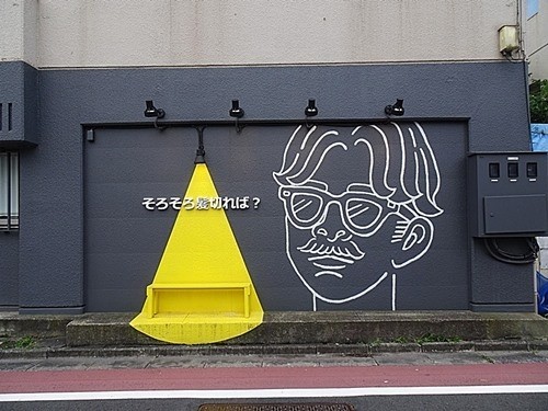 足立区東綾瀬で見掛けた「床屋」の壁のアート『そろそろ髪切れば?』。
