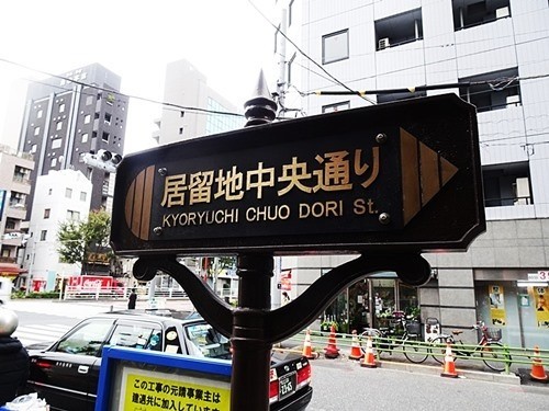 築地の聖路加国際病院近くにある、道路名「居留地中央通り」。
