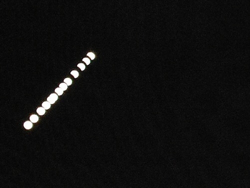 撮影した写真を見ると、左の方に固まって小さく写っている。