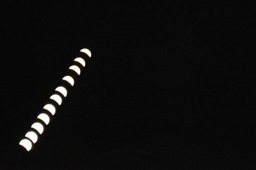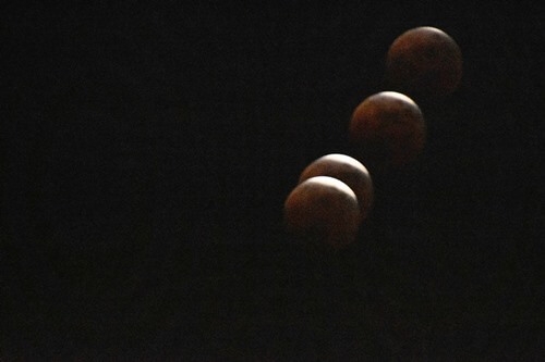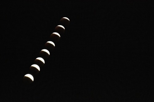 皆既月食が左下から始まった様子(2分に1枚撮影)