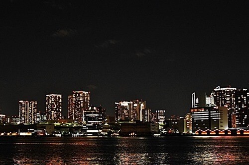 せっかく夜の晴海埠頭に来たのだからと思い、東京湾に広がる夜景の写真を撮った。