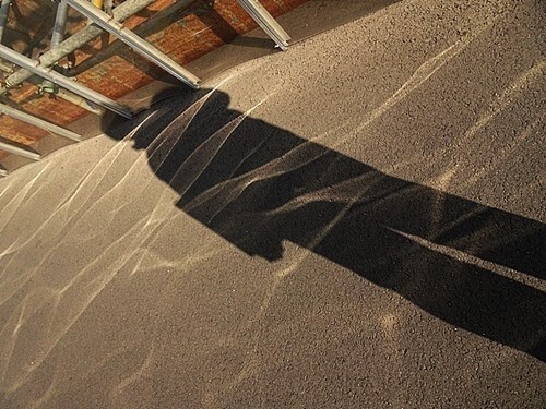 工事中にプラスチックの囲いで反射して、私の影に当る光の面白い映像も終りを迎える。