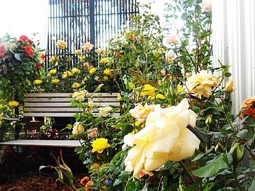 しかもエレベーターは店の一番奥にある。遠慮しながら店内を通り過ぎ、エレベーターで10階に上がった。そこには小さなローズガーデンがあった。