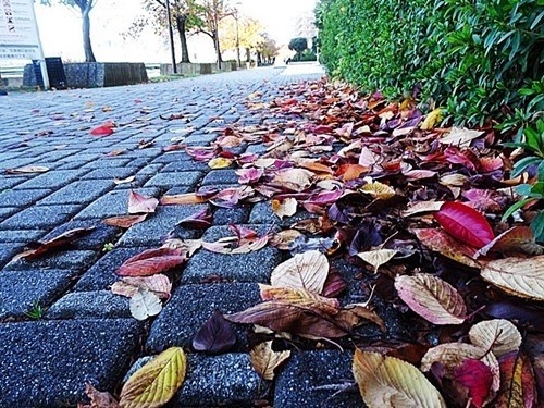 落ちた紅葉の葉が吹き溜まりにはたくさんあった。