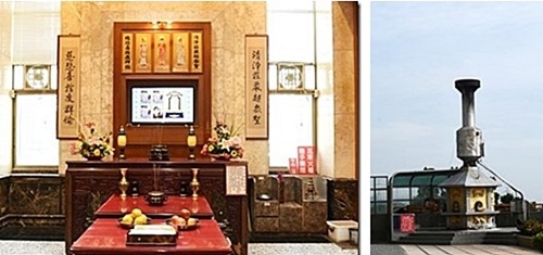奥のパソコンで暗証番号を入力すると、正面の液晶画面に両親の写真と位牌の画像が