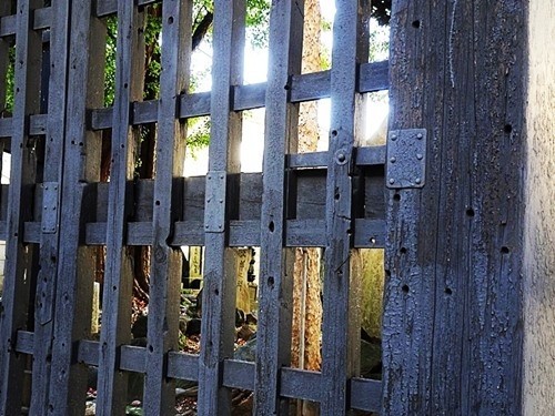 近くに寄って見たら、確かに門のアチコチに多数の弾痕跡が見えた。