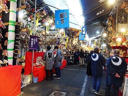 参拝を済ませ、熊手屋を冷やかしに見て歩いた。