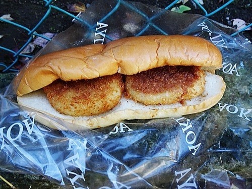 パンは昔のコッペパンで大きさは1.5倍ほどあり、中にコロッケが2個入っていてソースがかけてある。コロッケは単純で、肉などは入っていないでジャガイモだけである。