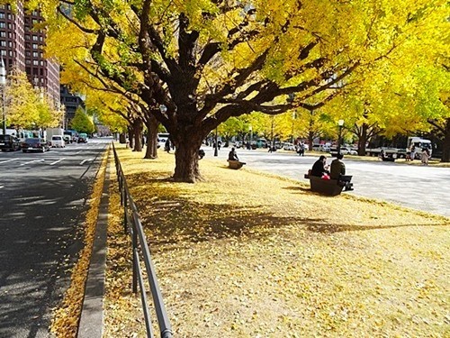 皇居のお堀に沿って、和田倉門へと歩いて行く。この道にもイチョウ並木があるので、それを見ながら行きたくて終点の「東京駅丸の内南口」まではバスに乗らなかった。お堀では鴨が遊んでいる。歩道を駆け抜けて行くランナーがいる。外国人ユーチューバーなのか、動画を撮りながら歩いて来る男がいる。