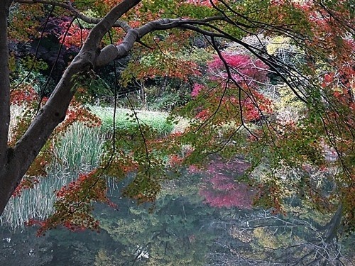 モミジの木は多いようだが、葉の色が茶色と緑で紅葉はしていない。