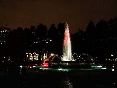 数分おきに噴水の色が変わる。綺麗だ。飽きずに眺めていた。