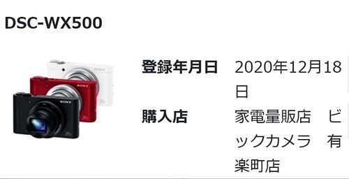 SONYに製品登録してある「DSC-WX500」が故障した。