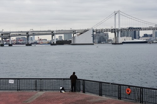 今回は「豊洲ぐるり公園」の先端に行き、レインボーブリッジを通過する時から着岸までを見に行った。