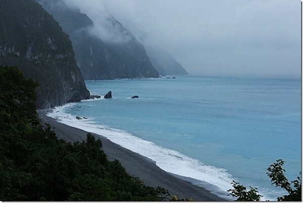 海岸線に出ると景色が素晴らしい。もし晴れていたら絶景だろうと悔やむ。
