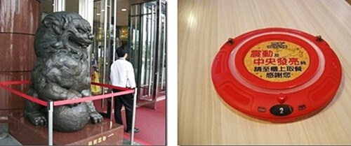 すると赤い丸い呼び出し用の電子器具を渡された。火鍋が出来たら、それがブルルッと震えた。火鍋を取りに行ってテーブルで食べたら、美味しかった。