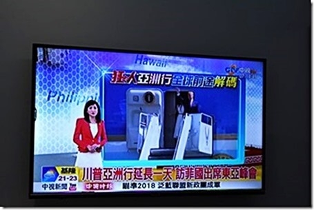 テレビニュースでトランプ大統領は「狂人」と書かれていた。 トランプは中国語で「川普」と書く。 「トランプ大統領、アジア歴訪を1日延長し、フィリピンで東アジア・サミットに出席」と 書いてあるらしい。