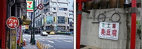 街には日本が溢れている。          台湾人の好きな「臭豆腐」。 店の前を通るだけで臭い。日本の「クサヤ」みたいな感じ。
