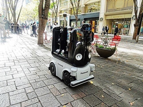 行幸道路に近付くと、ロボットの販売車がウロウロしていた。