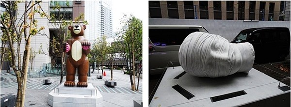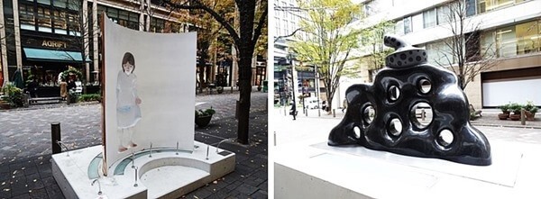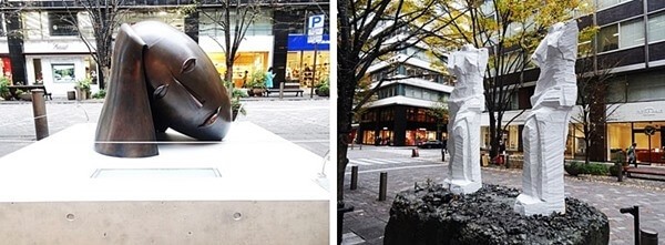 有楽町寄りから大手町までの1.2キロの両側に、色々な19人のアート作品が展示されている。ここは「丸の内ストリート・ギャラリー」と命名されている。