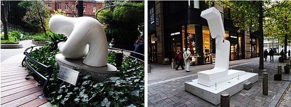 今回はアートを紹介するだけで、アートに詳しくない私のコメントは載せない。彫刻の説明は「タイトル」、「作者」、「製作年」です。 (左が上。右が下)