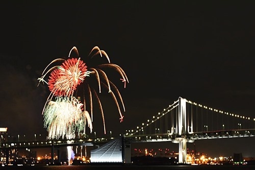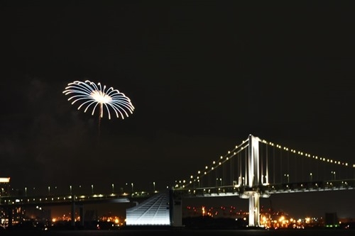 *写真は「お台場の花火」で、12月の土曜日毎に5分間だけ打ち上げます。