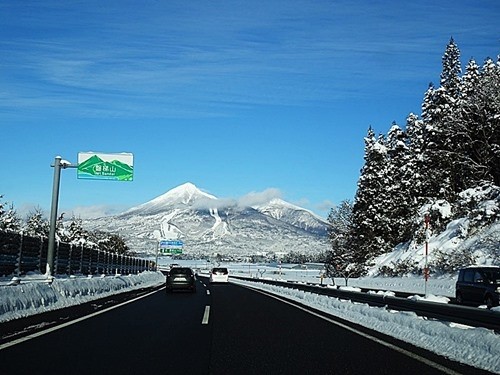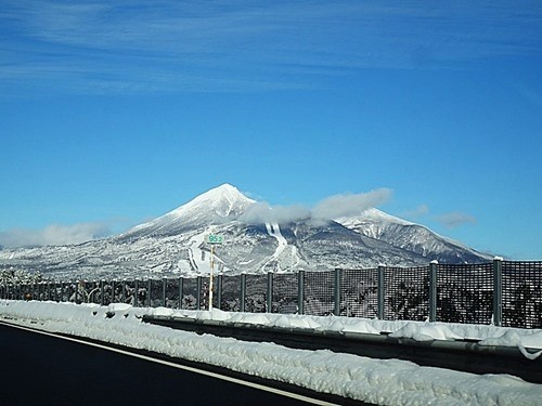 右手には会津磐梯山が雪を被って、そびえ立っている。