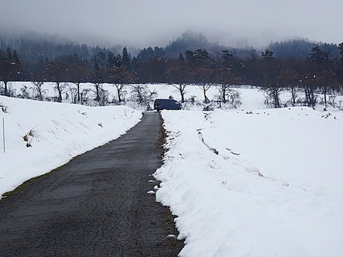 駐車場に戻る時に、Mさんは案の定、雪道に嵌って動けなくなった。私が助けながら戻り、駐車場にある暖房も無い建物の中で長い間みんなを待った。