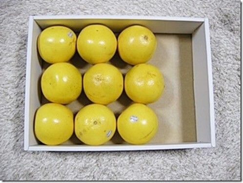 早速、箱を開けてビックリした。小さめのグレープフルーツが9個入っていて、傷防止の為の保護のパッキンも入っていない。だから箱の中でゴロゴロと移動していたのだろう。