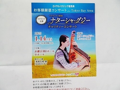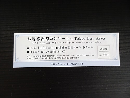 ある時、大手ではないある不動産仲介会社から、「お客様謝恩コンサート」のお知らせがあった。私はこの不動産会社のお客になったことは無いが、「先着順」と書いてあったので申し込んでみた。